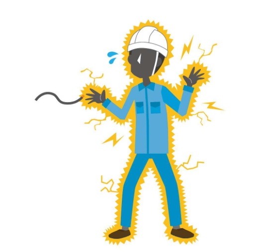 感電とは、電気製品や電気設備の不適切な使用、電気工事において何かの原因で人体又は作業機械が送電線に引っ掛かったこと、漏電の発生、及び自然災害である落雷等の要因によって人体に電流が流れ、障害を受けることをいいます。